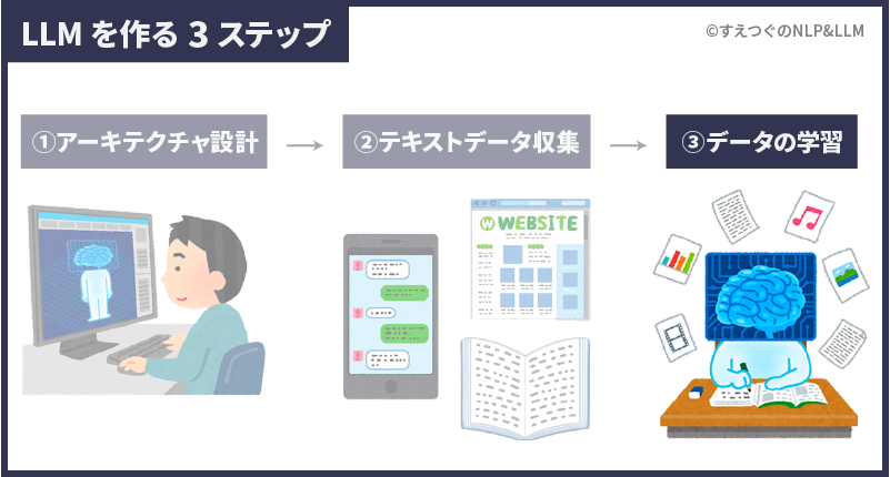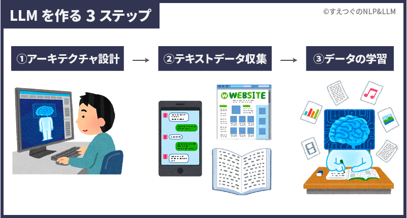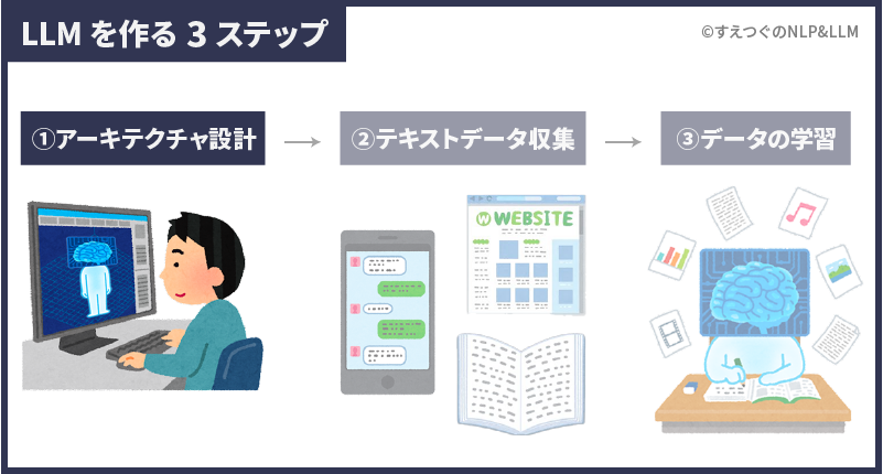 大規模言語モデルを作るステップは大きく3つです。